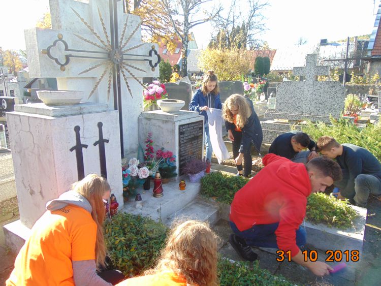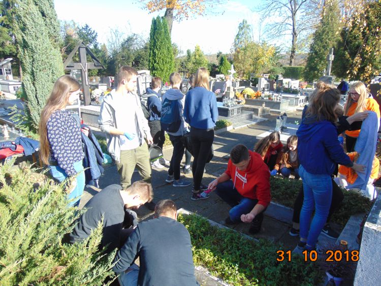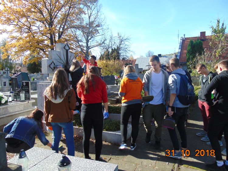 Jak co roku w ostatnich dniach października uczniowie naszego liceum pamiętali o starosądeckich grobach. Szczególna troską otaczamy mogiłę Powstańców Styczniowych, która opiekujemy się już od wielu lat. Przed 1 listopada Szkolny Klub Wolontariatu przeprowadził zbiórkę zniczy wśród uczniów naszej szkoły pod hasłem „Ocalić od zapomnienia”, która wiąże się z 100- leciem odzyskania niepodległości przez Polskę. Dlatego otoczyliśmy opieką mogiły walczących za nasz kraj w różnych okresach historii. W dni 31 października 2018 roku uczniowie klasy III a wraz z wolontariuszami, pod opieka mgr Alicji Czermińskiej i mgr Pawła Jochymka udali się na starosądeckie cmentarze. Uczniowie zadbali o czystość grobów, uprzątnęli liście, zapalili znicze oraz uczcili pamięć poległych za Ojczyznę.