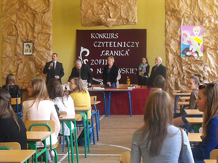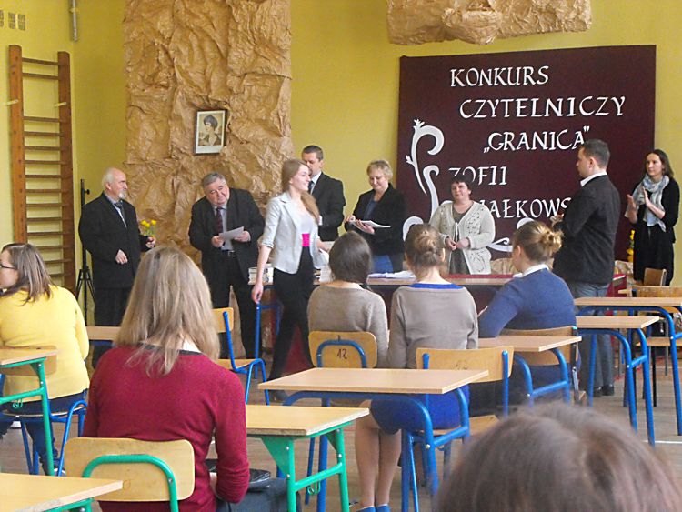 W piątek 14 marca 2014 r. w naszej szkole po raz kolejny odbył się konkurs czytelniczy, który zorganizowany był przez Powiatowy Młodzieżowy Dom Kultury w Starym Sączu. Tym razem uczestnikami byli uczniowie szkół ponadgimnazjalnych. Zmagania konkursowe odbywały się na etapie powiatowym, w którym uczestniczyło 79 uczniów szkół średnich. Tym razem sprawdzano znajomość lektury pt. „Granica” autorstwa Zofii Nałkowskiej. Do tego etapu zakwalifikowało się 12 naszych uczniów. O godzinie 10 przybyli uczestnicy i ich opiekunowie zebrali się na sali gimnastycznej, gdzie powitał ich Pan Dyrektor Krzysztof Szewczyk. Uczniowie zostali podzieleni na grupy, udali się do wyznaczonych sal i rozpoczęli rozwiązywanie testu. W międzyczasie opiekunowie zostali zaproszeni na mały poczęstunek. Po upływie wyznaczonego czasu komisja konkursowa rozpoczęła sprawdzanie testów. Na twarzach uczniów można było zobaczyć lekkie zdenerwowanie, związane z oczekiwaniem na wyłonienie zwycięzcy. Rozstrzygnięcie konkursu odbyło się w ok. godziny 12, Wyłoniono zwycięzców, wśród których znaleźli się uczniowie naszej szkoły. III miejsce zdobyło aż 17 uczestników, a między nimi znalazły się: Justyna Biel z IIIa, Ewelina Źrołka z IIIa, Natalia Sikora z Id oraz Katarzyna Mikołajczyk z IIId. Niestety nikomu z naszej szkoły nie udało się stanąć na podium II miejsca. Największe emocje wzbudziło przyznanie jedynego, pierwszego miejsca. Zdobyła go nasza koleżanka z III c, która zaimponowała wiedzą na temat treści Granicy, Iwona Król. Kolejny etap, na szczeblu wojewódzkim odbędzie się w Krakowie, w MDK „Na wrzosach”. Po ogłoszeniu wyników głos zabrał radny rady powiatu nowosądeckiego – Pan Edward Ciągło oraz dyrektor Powiatowego Młodzieżowego Domu Kultury – Pan Józef Puścizna. Obaj panowie pogratulowali uczestnikom. Potem ponownie głos zabrał Pan Dyrektor, aby pożegnać uczestników. Dziewczynom i wszystkim uczestnikom gratulujemy i życzymy dalszych sukcesów. Aleksandra Piwowarczyk (kl.IIc)