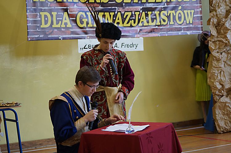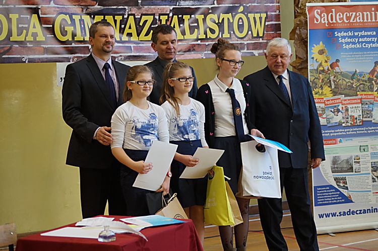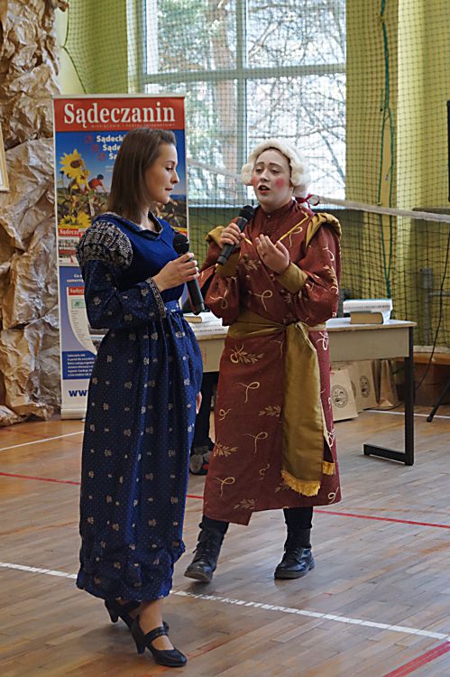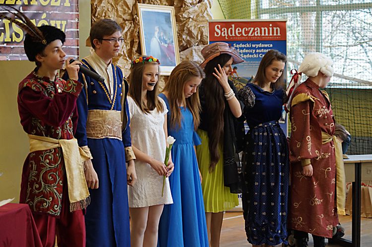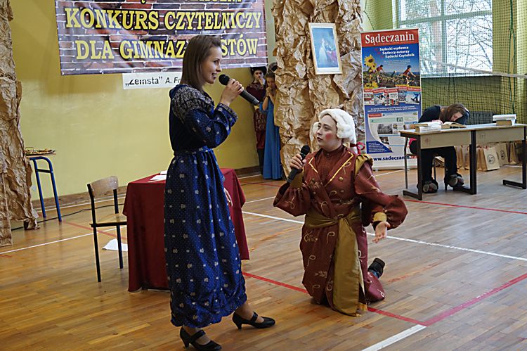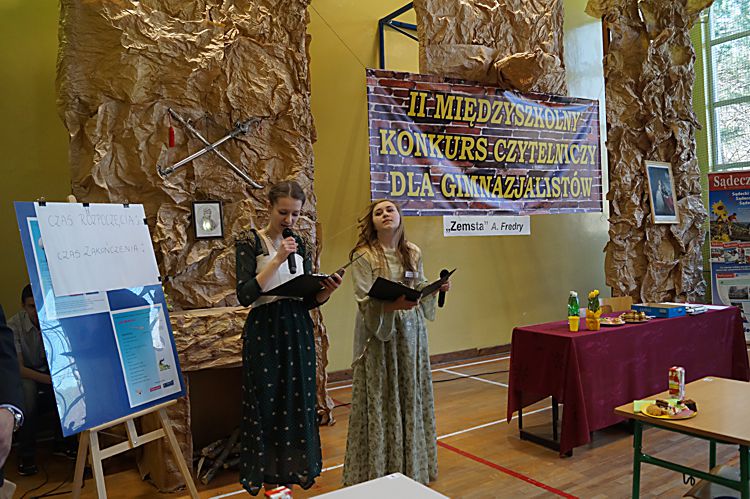 II Międzyszkolny Konkurs Czytelniczy dla Gimnazjalistów „Zemsta” Aleksandra Fredry odbył się 11 marca 2014 roku w gmachu naszego Liceum. Patronat honorowy nad konkursem sprawował Pan Jacek Lelek - Burmistrz Starego Sącza, który też uświetnił swoim przybyciem całe przedsięwzięcie.Naszym gościem był również Wicestarosta Nowosądecki Pan Mieczysław Kiełbasa. Patronat medialny nad konkursem objęli Sądeczanin – miesięcznik i portal internetowy oraz Radio RDN Nowy Sącz. Na nasze zaproszenie odpowiedzieli również dziennikarze Radia RMF Maxxx, Radio Eska i Radio Kraków. Do udziału w konkursie zgłosiło się 89 uczestników z 30 gimnazjów. W szranki konkursowe stanęli uczniowie klas 1, 2 i 3, dla których znajomość treści lektury nie była trudna. Nad przebiegiem konkursu czuwali Pan Dyrektor Liceum Ogólnokształcącego – Krzysztof Szewczyk i organizatorki Panie: Małgorzata Jawor – przewodnicząca jury, Joanna Opyd, Iwona Rychlewska, Małgorzata Stelmach i Teresa Szewczyk. Konkurs rozpoczął się powitaniem gości, uczestników konkursu i ich nauczycieli, następnie uczniowie rozwiązywali test ze znajomości Zemsty Aleksandra Fredry . Po opuszczeniu sali gimnazjaliści mogli posilić się przygotowanymi dla nich kanapeczkami ( Firma Grześ) i pysznym ciastem ( Firma Klag). By nieco ostudzić emocje pani Teresa Szewczyk zaprosiła wszystkich uczestników konkursu na spacer po Starym Sączu, którego celem było zwiedzenie klasztoru Sióstr Klarysek. Historia zespołu klasztornego sióstr klarysek jest związana nierozerwalnie z dziejami Starego Sącza. Powstanie miasta było konsekwencją nadania św. Kindze Ziemi Sądeckiej w roku 1257 i podjętej przez niż akcji kolonizacyjnej. Ufundowany przez św. Kingę w roku 1280 klasztor klarysek otrzymał od fundatorki jako uposażenie ziemię sądecką wraz z miastem. Na konkurs przybyli uczniowie z różnych stron, więc dla niektórych była to pierwsza wizyta w starosądeckim klasztorze i dodatkowa atrakcja konkursu. O godzinie 12.30 odbył się spektakl teatralny pt. Koszmary gimnazjalisty przygotowany przez Szkolne Koło Teatralne. Scenariusz przedstawienia został opracowany przez panie: Małgorzatę Stelmach i Joannę Opyd na podstawie tekstów Kabaretu Moralnego Niepokoju i fragmentów lektur szkolnych. Występ naszych artystów spotkał się z dużym zainteresowaniem, wzbudził podziw nie tylko ze względu na ich aktorskie talenty, ale piękne i stylowe stroje. Maskotką konkursu był Krokodyl. Po spektaklu nastąpiła długo oczekiwana chwila – ogłoszenie wyników. By stopniować napięcie i podgrzewać atmosferę rozpoczęto od wręczenia dyplomów nauczycielom przygotowującym uczniów do konkursu, następnie dyplomów za udział dla każdego uczestnika. Potem z rąk Pana Burmistrza Jacka Lelka, Wicestarosty Nowosądeckiego Pana Mieczysława Kiełbasy oraz Dyrektora Liceum Krzysztofa Szewczyka nagrody powędrowały do wyróżnionych uczniów, a było ich 14. I wreszcie pani Iwona Rychlewska ogłosiła nazwiska tych, którzy zdobyli medalowe miejsca: I miejsce – Karolina Gizicka (Gimnazjum w Przysietnicy) II miejsce – Kinga Gizicka (Gimnazjum w Przysietnicy) III miejsce – Łucja Lachowska (Gimnazjum nr 11 w Nowym Sączu) Gratulujemy dziewczynom sukcesu i .... szczegółowej znajomości treści Zemsty! Za pierwsze miejsce zwycięzca otrzymał tablet, za drugie – aparat fotograficzny, a za trzecie – wysokiej klasy słuchawki oraz prezenty przygotowane przez Starostwo Powiatowe. Fundatorem głównych nagród był Burmistrz Starego Sącza Jacek Lelek. Nagrodami dla nauczycieli - opiekunów zwycięzców były kosmetyki Bottege Verde ( Betterware). Trzeba też zaznaczyć, że nikt nie wyszedł z konkursu bez nagrody. Konkurs nie odbyłby się w takiej formie bez naszych sponsorów: 2. Bank Spółdzielczy w Starym Sączu, 3. Łukasz Rogowski MIKRO – WAG WAGI SAMOCHODOWE w Nowym Sączu 4. Zofia i Władysław Sychowscy Firma Usługowo – Handlowa Rolbud Materiały Budowlane w Gołkowicach, 5. Anna Baran PHU BiurOwiec w Starym Sączu, 6. Drukarnia Flexergis Sp. z o.o. w Nowym Sączu, 7. Drukarnia Goldruk w Nowym Sączu, 8. Adam Sroka Sroka Transport w Słopnicach, 9. Maciej Leśniak P.P.H.U. Ekran w Starym Sączu, 10. P.H. Multi w Starym Sączu, 11. Anna Szewczyk Punkt Sprzedaży Detalicznej w Starym Sączu, 12. Getin Bank Oddział w Starym Sączu, 13. Paweł Jawor Usługi Transportowe w Starym Sączu, 14. Grzegorz Klag Firma KLAG w Gołkowicach, 15. Renata i Grzegorz Ząber Firma Grześ z Nawojowej, 16. Betterware - Bottega Verde. Zapraszamy do oglądania galerii zdjęć z konkursu i wycieczki do klasztoru Sióstr Klarysek. (oprac. Iwona Rychlewska)
