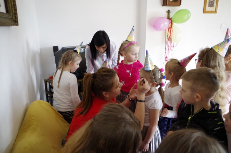 7 kwietnia 2018 roku po raz kolejny wolontariusze z Liceum Ogólnokształcącego w Starym Sączu wspólnie ze Stowarzyszeniem Sursum Corda z Nowego Sącza, zorganizowali „Urodziny na lekarstwo”. Tym razem jubilatką była 7 letnia Alicja Świgut ze Świniarska. Alicja urodziła się z wada stóp i od początku przechodzi operacje i skomplikowane zabiegi rehabilitacyjne. Jest duża poprawa, ponieważ w tym roku zaczęła chodzić do szkoły i nareszcie może się spotykać i bawić ze swoimi rówieśnikami. Jednak ciągle przed nią długa droga, bo już 9 kwietnia 2018 roku ma się wstawić w szpitalu, gdzie czeka ja kolejna operacja stóp. Dlatego urodziny były imprezą, na której Alicja zapomniała o wszystkim co ją czeka. Organizacją urodzin kierowały koordynatorki Szkolnego Klubu Wolontariatu działającego przy LO Stary Sącz panie Małgorzata Jawor i Teresa Szewczyk. Na przyjecie urodzinowe przyszło 17cioro rówieśników Alicji. Na początek były prezenty i malowanie twarzy. Wolontariuszki Alicja Faron, Katarzyna Słowik i Katarzyna Wilczyńska miały dużo pracy bo ustawiła się kolejka, do malowania piesków, tygrysków czy motylków. Następnie pojawił się tort, który był wielką niespodzianka, bo był w kształcie Minionka, ulubionej maskotki Alicji. Potem były tańce, zabawy, malowanki, kalambury itp. Bardzo miło było patrzeć na uśmiechnięte twarze dzieci, szczególnie Alicji, która takie urodziny miała po raz pierwszy. Wolontariuszki wykazały się wielką inwencją i kondycją, żeby dotrzymać kroku niezmordowanym dzieciom. Mamy nadzieję, że przeżyte chwile będą cudownym wspomnieniem dla Alicji, szczególne w nadchodzącym tygodniu.