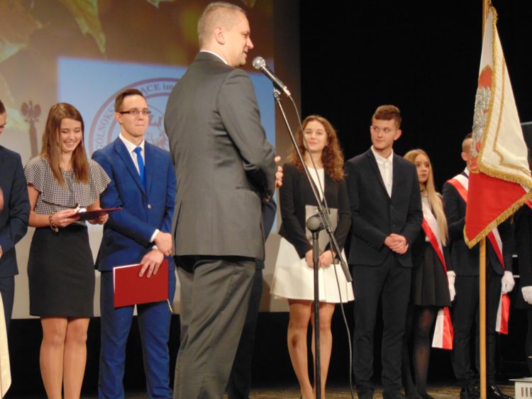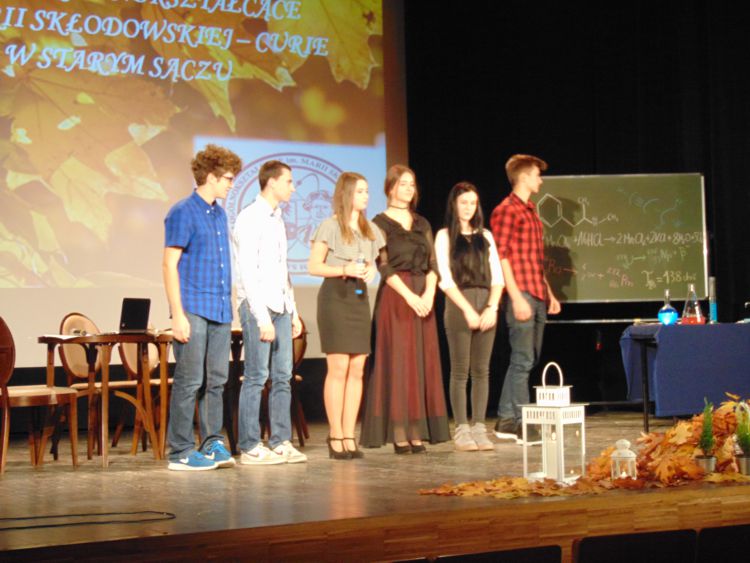 W 150 rocznicę urodzin Marii Skłodowskiej – Curie, noblistki i pierwszej kobiety, która objęła katedrę na Sorbonie, starosądeckie liceum obchodziło swoje święto. Obchody Święta Szkoły rozpoczęły się tradycyjnie od przemarszu całej społeczności szkolnej do kościoła parafialnego im. św. Elżbiety w Starym Sączu. W kazaniu skierowanym przede wszystkim do uczniów - ksiądz Paweł Gruszka powiedział o odpowiedzialności za siebie i za wybory, których dokonujemy. Potem w uroczystym orszaku przeszliśmy do CKiS im. Ady Sari, gdzie odbyła się część oficjalna. Dyrektor Liceum – Krzysztof Szewczyk powitał zaproszonych gości, wśród których byli: Burmistrz Miasta i Gminy Stary Sącz – Pan Jacek Lelek, V – ce Burmistrz - Pan Kazimierz Gizicki, Przewodnicząca Rady Miasta – Ewa Zielińska, Dyrektor Gimnazjum w Spisskiej Nowej Ves – Pan Jozef Kacenga, byli dyrektorzy Liceum Ogólnokształcącego w Starym Sączu: Pani Helena Domańska i Pan Stanisław Bienias dyrektorzy szkół podstawowych z terenu miasta i gminy Stary Sącz: Pani Wioletta Nowak – dyrektor SP nr 2 w Starym Sączu wraz z V-ce dyrektorem – Panią Joanna Pabian – Rams, dyrektor SP w Barcicach – Pan Grzegorz Garwol, dyrektor SP w Przysietnicy – Pan Aleksander Łukasik, dyrektor SP w Gołkowicach – Pani Renata Burchel oraz dyrektorzy: Zespołu Szkół Ponadgimnazjalnych – Pan Grzegorz Skalski, Międzyszkolnego Internatu w Starym Sączu – Pani Lucyna Dybiec i Kierownik Powiatowego Centrum Usług Wspólnych w Starym Sączu – Pani Elżbieta Ciurka. W swoim wystąpieniu Dyrektor podkreślił rolę szkoły w życiu każdego człowieka, zwrócił uwagę na obecność w historii Liceum patronki: Marii Skłodowskiej – Curie oraz zapowiedział przyszłoroczne obchody 70 - lecia powstania szkoły. Wystąpił również Burmistrz Starego Sącza, który jest byłym nauczycielem naszej szkoły oraz Dyrektor zaprzyjaźnionego Gimnazjum ze Słowacji – Pan Josef Kacenga i tutaj trzeba zaznaczyć, że przedstawiciele tej szkoły towarzyszą nam zawsze w czasie obchodów Święta Szkoły. W imieniu rodziców głos zabrała Przewodnicząca Rady Rodziców – Pani Bogumiła Malik, która nazwała Liceum jej rodzinną szkołą, bowiem pani Bogumiła po przerwie, znów jest w Radzie Rodziców, a w liceum uczy się jej czwarte dziecko, ona sama też jest absolwentką starosądeckiego LO, tak jak jej siostra Marta Zięba – aktorka w Teatrze Polskim we Wrocławiu. Potem odbyło się ślubowanie klas pierwszych, chwila uroczysta i ważna dla każdego ucznia, następnie oficjalnie ogłoszono wyniki wyborów do Uczniowskiej Rady Szkoły, pożegnano „stary” Samorząd i powitano w roli Przewodniczącego Szkoły Piotra Konstantego – ucznia klasy 1 b. Po części oficjalnej, na scenie starosądeckiego „Sokoła”, wystąpiła Wiktoria Malik – uczennica klasy 1b, która w brawurowy sposób zaśpiewała piosenkę: „A ja wolę brzydala”, co spotkało się z aplauzem wszystkich obecnych na sali. Ważnym punktem obchodów Święta Szkoły był program artystyczny w wykonaniu uczniów klasy z 2c i Isabelli Jończyk z 2b w roli Marii Skłodowskiej – Curie. W programie wykorzystano fragmenty filmu pt. „Maria Skłodowska - Curie”, ciekawostki z życia noblistki oraz fragmenty intymnych dzienników naszej patronki, a przedstawienie osadzono w czasach współczesnych, scenariusz i reżyseria zostały przygotowane przez: Panią Iwonę Rychlewską – polonistkę i Panią Teresę Szewczyk – historyczkę. Na koniec programu o Marii – kobiecie jakiej nie znamy wystąpiła Kinga Kurowska, która wykonała piosenkę Edyty Geppert „Och, życie kocham Cię nad życie”, która w niezwykle lirycznym i poruszającym serca słuchaczy występie zakończyła część oficjalną obchodów. Już w szkole miał miejsce Konkurs piosenki obcojęzycznej, w którym zaprezentowali się przedstawiciele wszystkich klas, utwory wykonywane były w języku angielskim, natomiast klasa 1b śpiewała w języku hiszpańskim tegoroczny hit lata pt. „Despacito”, zwyciężyli jednak uczniowie klasy 2 b w piosence „All of me”, utwór wykonała w imieniu klasy Isabella Jończyk. Święto Szkoły jest zawsze okazją do wspomnień także o tych, którzy odeszli i dlatego delegacja uczniów Liceum z Panią Jolantą Hejmej 9 listopada odwiedziła groby zmarłych nauczycieli, pracowników szkoły i uczniów, spoczywających na starosądeckich cmentarzach. Zapraszamy za rok, na obchody 70 – lecia powstania szkoły.