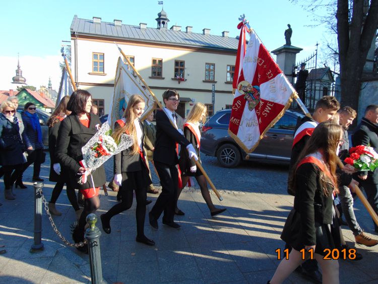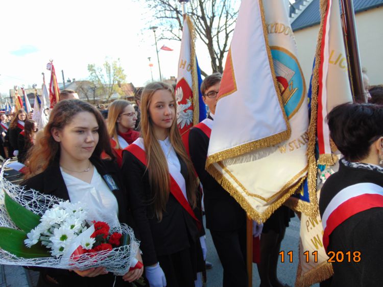 W dniu 11.11.2018 r uczniowie naszej szkoły wraz z pocztem sztandarowym uczcili 100 rocznicę odzyskania przez Polskę niepodległości. Uroczystości rozpoczął pochód spod kina ,,Sokół” i Msza święta na starosądeckim Rynku. Po mszy uczestnicy uroczystości odśpiewali wspólnie hymn państwowy, włączając się w akcję ,,Niepodległa do hymnu”. W patriotycznej manifestacji uczestniczyli mieszkańcy miasta i gminy, władze samorządowe, duchowieństwo, członkowie organizacji społecznych i politycznych, druhowie OSP, nauczyciele i młodzież szkolna. Pochód z pocztami sztandarowymi i uczestnikami marszu przeszedł ulicami K. Wielkiego, A Mickiewicza (przy której, koło nowej biblioteki został odsłonięty obelisk ku pamięci konspiracyjnej organizacji niepodległościowej ,,Skała”) na nowy cmentarz komunalny. Na cmentarzu odczytano Apel Poległych, złożono kwiaty, oddano hołd bohaterom walki o wolność.