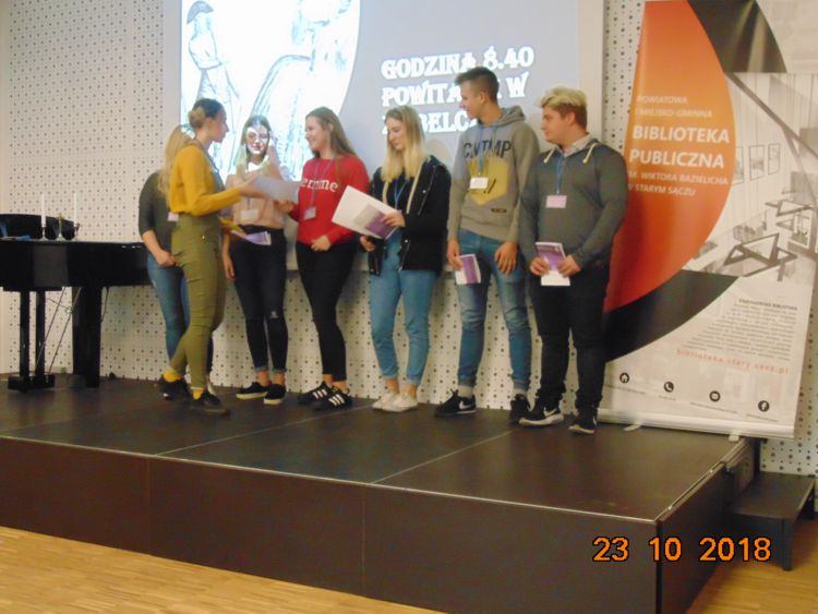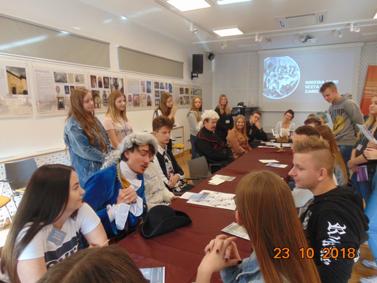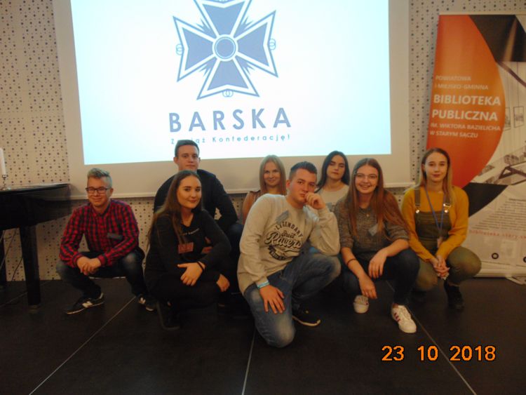 W dniach 22 i 23 października 2018 roku uczniowie klasy II B i I b wzięli udział w warsztatach dotyczących Konfederacji Barskiej zorganizowanych w Powiatowej i Miejsko – Gminnej Bibliotece w Starym Sączu. Zajęcia prowadzone były przez Stowarzyszenie Pospolite Ruszenie Szlachty Ziemi Krakowskiej i wpisują się w obchody 250 rocznicy Konfederacji Barskiej. Uczniowie pod opieka mgr Małgorzaty Jawor i mgr Agnieszki Leskiej zostali wprowadzenie w tematykę bardzo ciekawym wykładem a następnie wcielali się w postacie z epoki odgrywając przypisane role. Oprócz zdobytej wiedzy była to również świetna zabawa. W wyniku przeprowadzonego larpu historycznego wyłoniono 6 uczniów : Malik Wiktoria, Suflita Paulina, Orłowska Wiktoria, Udziela Patrycja, Konstanty Piotr, Kożuch Alicja, którzy w dniach 8 – 9 grudzień 2018 wezmą udział w dalszej części larpu w Kasztelu w Szymbarku. Dla wszystkich uczestników była to niezwykle ciekawa lekcja historii.