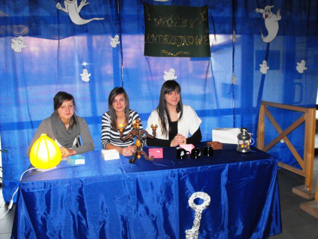 30.11.2011 r. w naszej szkole odbył się dzień wróżb andrzejkowych. Członkowie Samorządów klasowych oraz Samorządu Uczniowskiego przygotowali wiele ciekawych wróżb. Aleksandra Duduś (2f), Magdalena Tworek (2f) i Kinga Podobińska (2f) wróżyły na przerwach ,natomiast Aleksandra Śmierciak (1e) oraz Angelika Sopata (1e) sprzedawały ciasto upieczone przez naszych uczniów za symboliczną złotówkę. Całkowity dochód ze sprzedaży ciasta zostanie przeznaczony na organizację Dnia Świętego Mikołaja. Przypominamy również o castingu na ekipę Świętego Mikołaja, który odbędzie się 5 grudnia 2011 oraz konkursie na prezent dla Mikołaja, który zostanie rozstrzygnięty 6 grudnia 2011.
