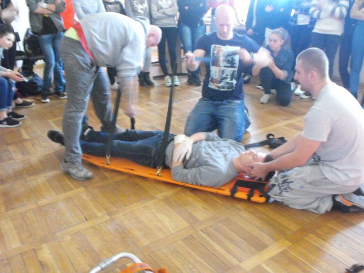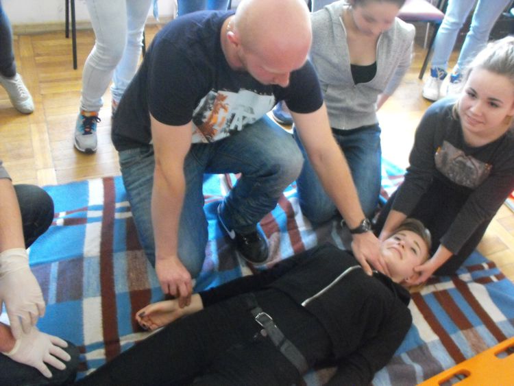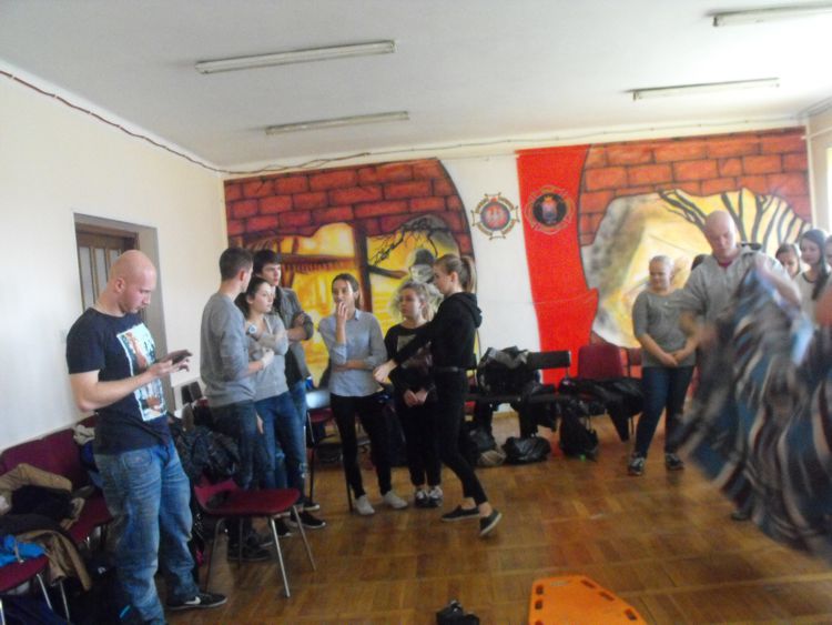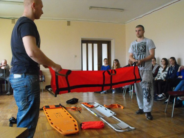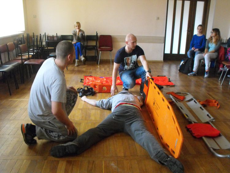Dzisiejsze zajęcia praktyczne (22.10) z ratownictwa medycznego odbyły się w siedzibie OSP w Starym Sączu. Strażacy pod okiem zastępcy komendanta pana Marka Maślanki ćwiczyli zagadnienia związane z zachowaniem na miejscu zdarzenia, pomoc poszkodowanemu na miejscu wypadku - wyciąganie z palącego się samochodu, umieszczanie poszkodowanego na desce ortopedycznej ratowniczej.