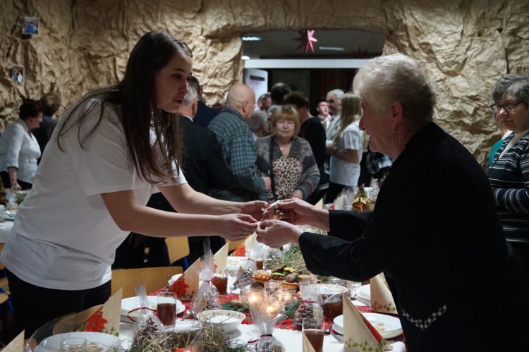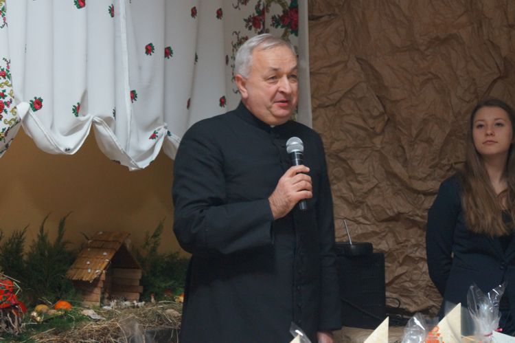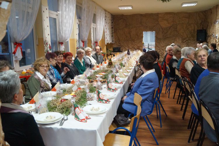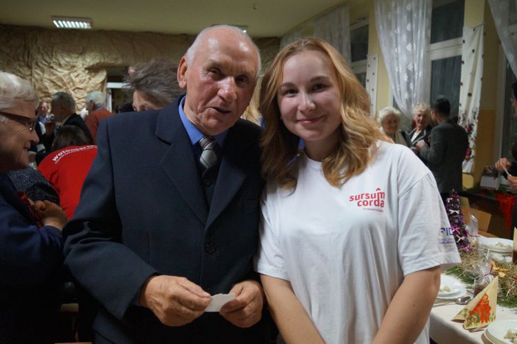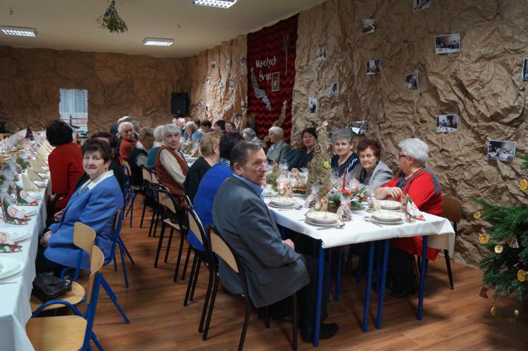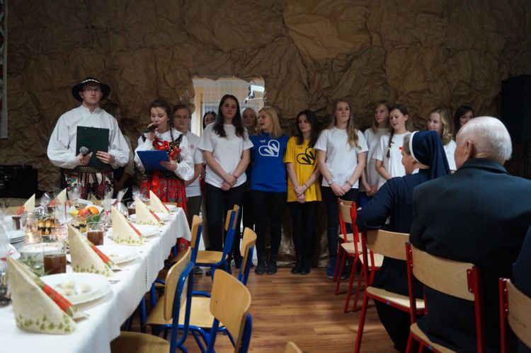 Mury liceum już po raz szósty stały się miejscem spotkania seniorów z gminy Stary Sącz. W poniedziałek 21 grudnia zaproszeni goście oraz wolontariusze z LO i ZSP zasiedli przy wigilijnym stole. Tegoroczne spotkanie było zwieńczeniem projektu realizowanego w ramach Programu Funduszu Inicjatyw Obywatelskich „Działam, bo lubię”, w którym brało udział 7 wolontariuszek ze starosądeckiego ogólniaka. Projekt miał na celu rozwój kompetencji obywatelskich i wzrost zaangażowania w działalność na rzecz społeczności lokalnych młodzieży w wieku 16 - 24 lat z subregionu sądeckiego i trwał od maja do grudnia br. To wolontariuszki wymyśliły konwencję, w której odbywało się spotkanie. Miało być „jak dawniej”, dlatego na choince zawisły pierniki i suszone jabłka, pomarańcze i cytryny, a na stołach zagościła jedlina, siano i owoce. O godzinie 16.00 rozpoczęliśmy wigilię przeczytaniem fragmentu Ewangelii według św. Łukasza, modlitwą i życzeniami złożonymi przez proboszcza parafii pw. św. Elżbiety księdza Marka Tabora. Pragniemy serdecznie podziękować księdzu proboszczowi, który wiedząc jak ważna jest dla nas Jego obecność, nie wahał się opuścić na kilka minut konfesjonału i przybiec po sąsiedzku, żeby towarzyszyć nam choć na początku. Potem były przemówienia i wspólne składanie życzeń. W tym roku swoją obecnością spotkanie zaszczycili: burmistrz Starego Sącza pan Jacek Lelek, wiceburmistrz pan Kazimierz Gizicki, prezes Stowarzyszenia Sursum Corda pan Marcin Kałużny, dyrekcja Gimnazjum im. J.Słowackiego w Starym Sączu pan Stanisław Majca i pani Wioletta Nowak, dyrekcja ZSP pan Grzegorz Skalski i pani Angelika Duda, dyrekcja LO pan Krzysztof Szewczyk i pani Jolanta Hejmej oraz wymieniany już wyżej ksiądz Marek Tabor. Na stołach nie mogło zabraknąć tradycyjnych potraw oraz drobnych piernikowych upominków, które zostały przygotowane przez uczniów z ZSP. Całości przygrywała ludowa kapela również z ZSP. Gorące podziękowania kierujemy w stronę sponsorów, szczególnie burmistrza Starego Sącza pana Jacka Lelka, bez którego pomocy trudno by było zorganizować tegoroczne spotkanie. Dziękujemy również wolontariuszom zaangażowanym w przygotowanie całości wigilii dla seniorów.