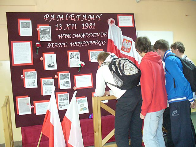 Rocznica wprowadzenia Stanu Wojennego. Z tej okazji w Liceum Ogólnokształcącym w Starym Sączu została przygotowana okolicznościowa wystawa upamiętniającą te tragiczne wydarzenia z przed trzydziestu lat. Uczniowie na zamieszczonych ilustracjach archiwalnych mogą prześledzić zdarzenia z grudnia 1981 roku. W ramach lekcji historii i wiedzy o społeczeństwie przeprowadzone zostały prelekcje dotyczące stanu wojennego w Polsce.