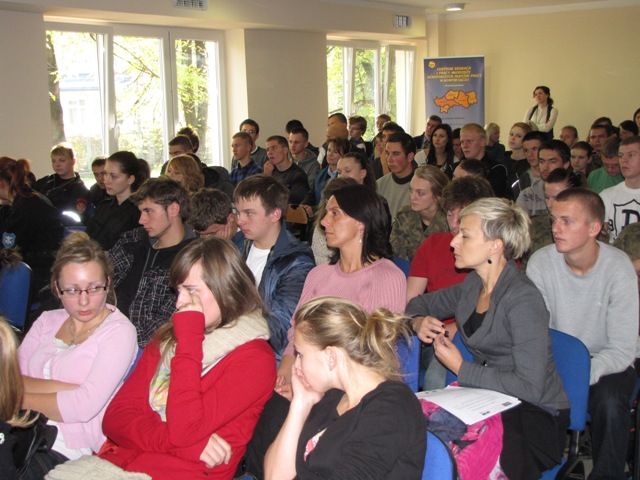 W dniu 19 października br. w ramach Ogólnopolskiego Tygodnia Kariery (OTK) organizowanego przez Stowarzyszenie Doradców Szkolnych i Zawodowych Rzeczpospolitej Polskiej uczniowie LO im. Marii Skłodowskiej - Curie w Starym Sączu mieli okazję uczestniczyć w seminarium "ZAWÓD Z PASJĄ - ZAWODY MUNDUROWE", które odbyło się w budynku Centrum Edukacji i Pracy Młodzieży OHP. Zajęcia poświęcone były kompleksowej informacji na temat kształcenia, uwarunkowań prawnych związanych z zawodami mundurowymi i możliwości podejmowania pracy w tym zawodzie. Tematykę prezentowali: policjant, pracownicy Zakładu Karnego, żołnierz oraz strażak. Każdy z przedstawicieli danej służby mundurowej opowiadał o tym, jakie predyspozycje powinien mieć potencjalny kandydat na dane stanowisko, jak je osiągnąć, jak wygląda praca i jakich zarobków możemy się spodziewać. Wytrwale również wszyscy odpowiadali na nurtujące nas pytania. Komisarz Mariusz Tokarczyk przedstawiciel Komendy Miejskiej w Nowym Sączu opowiadał nam o swojej dwudziestoletniej służbie, zachęcał młodzież do podjęcia zawodu w charakterze policjanta i zapewniał, iż każdy znajdzie "coś dla siebie". Według niego: "Policjant to nie tylko osoba patrolująca miasto. Kandydaci w zależności od podjętych specjalizacji powinni posiąść umiejętności jazdy konnej, nurkowania, obsługi helikoptera, maja również możliwość pracy w laboratorium". Por. Łukasz Chruślicki zajmujący stanowisko oficera prasowego w Zakładzie Karnym w Nowym Sączu przedstawił nam jak wygląda praca z osadzonymi, jak bardzo odporni psychicznie powinni być przyszli pracownicy ZK. Nie jest to zawód tylko dla mężczyzn, miejsce w tym zakładzie pracy znaleźć mogą również kobiety. P. Chruślicki nie ukrywał, iż płeć piękna potrzebuje dodatkowej ochrony . Myślę, iż po wykładzie porucznika Chruślickiego większość potwierdzi fakt, iż praca w Zakładzie Karnym jest trudna ale czasami przynosi owoc w zresocjalizowanym skazanym. Szeregowy G. Paciorek pełniący służbę w Zespole Promocyjnego V Batalionu Dowodzenia w Krakowie opowiadał nam o tym jak doszedł do zajmowanego przez siebie stanowiska, o zawodowym realizowaniu się. Dowiedzieliśmy się również co robi żołnierz, kiedy nie wyjeżdża na misje. Osoby pragnące pracować w tym zawodzie czeka ciężka droga do przejścia trzeba zaliczyć testy sprawności fizycznej jak i również testy psychologiczne. Nie ulega żadnej wątpliwości, iż największe wrażenie na słuchaczach wywarł emerytowany strażak asp. sztab. Mirosław Pulit działający w Strażackiej Sekcji Poszukiwawczo - Ratowniczej Szkoły Aspirantów Państwowej Straży Pożarnej w Krakowie z siedzibą w Nowym Sączu oraz Jednostce Ratowniczo Gaśniczej Państwowej Straży Pożarnej nr 2 w Nowym Sączu. Do chwili jego wystąpienia większość słuchaczy prace strażaka wyobrażała sobie jako interwencje w czasie pożarów, powodzi, wypadków. Pan Pulit jednak zmienił nasze wyobrażenia. Slajdy, które dla nas przygotował przedstawiały trzęsienia ziemi od 1999 w Turcji do 2010 na Haiti. Misje, z których oglądaliśmy fotografie wywarły na nas niesamowite wrażenia. Asp. sztab. Mirosław Pulit opowiadał nam o tych wydarzeniach z wielkim wzruszeniem, zapewniał nas również, iż człowiek, który ma okazje zobaczyć przysłowiowe "piekło" na ziemi potem inaczej patrzy na swoje życie, jest stokrotnie bardziej wdzięczny Bogu za to co ma. To spotkanie pomoże nam w wyborze zawodu, wiemy na pewno, iż osoby ubiegające się o wyżej wymienione stanowiska powinny cechować silna psychika, wytrwałość i sprawność fizyczna oraz chęć niesienia pomocy innym. Katarzyna Izworska (3e)